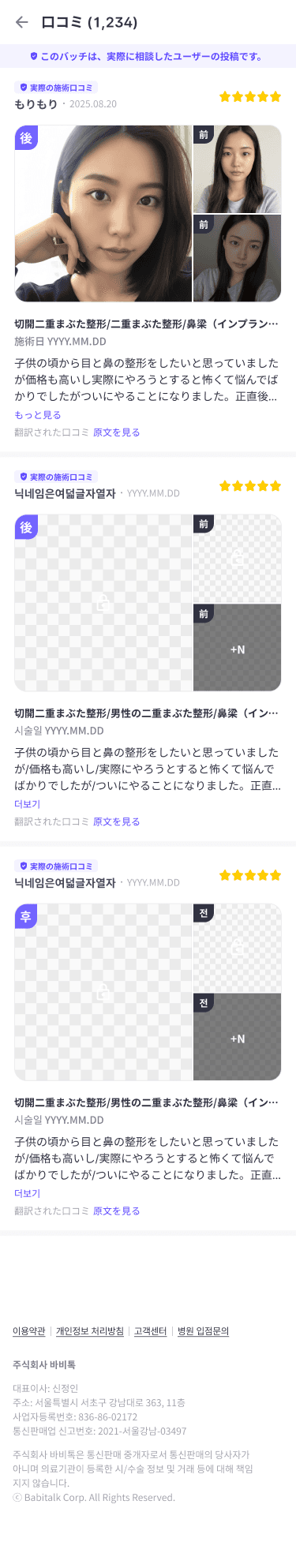 実際に施術を受けた人の口コミやビフォーアフター写真のチェックが可能!